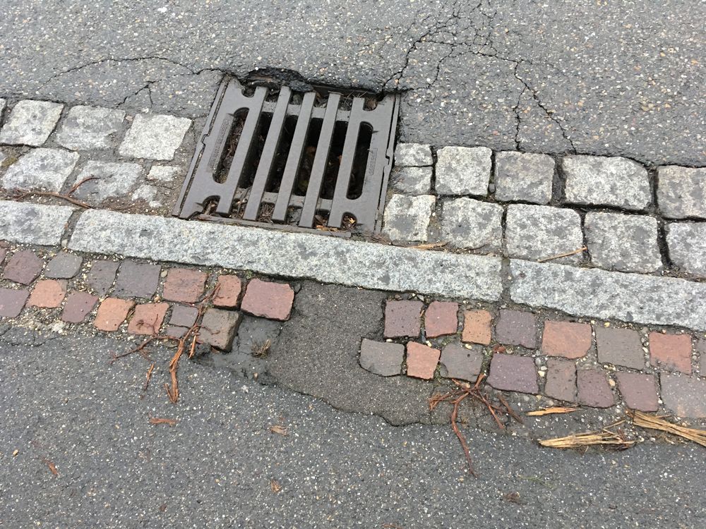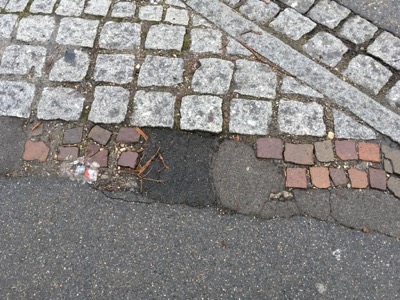 Üble Stellen am Gehwegrand vor der Bäckerei Maser