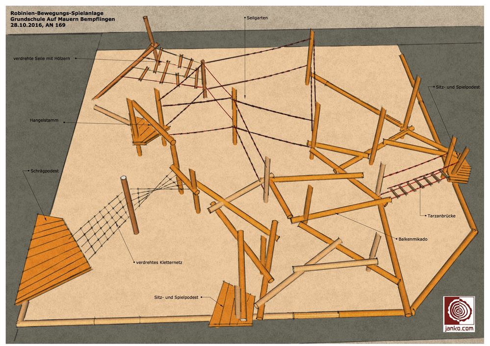 Für die Erneuerung der Spielanlage im Schulhof der Grundschule Auf Mauern, das sog. Baummikado sind im Haushaltsplan 25.000 € vorgesehen. Die Rektorin Frau Gall-Hofmann hatte Angebote eingeholt, und zwar bei der Firma Janko und der Firma KuKuK. Die Preise lagen bei 29.512 € bzw. bei 35.558 €. Zu diesen Kosten müssen aber noch weitere Arbeiten hinzu gerechnet werden, wie z.B. Entfernung des bestehenden Fallschutzes und der Fundamente und die Erneuerung derselben. Hierfür wurden Kosten von 9.700 € bzw. 13.000 €. Frau Gall-Hofmann berichtete, dass sie bei den Anbietern eine Optimierung/ Reduzierung ihrer Angebote angefordert hatte. Gleichzeitig hatte der Grundschulförderverein eine Spende von 5.000 € zugesagt. Das Gesamtbudget sollte 35.000 € nicht überschreiten; deshalb kündigte die Rektorin an, man werde versuchen, die restlichen 5.000 € über Spenden zu finanzieren. 600 € wurden bereits am Martinimarkt von Azubis der Bäckerei Veit erwirtschaftet, die einen überdimensionalen Marmorkuchen gebacken und verkauft hatten. Den Zuschlag erhielt die Firma Janko mit knapp 35.000 €; das Gerät soll im März 2017 errichtet werden.