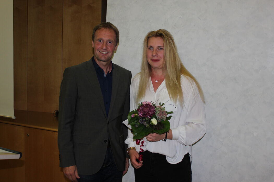 Erster Punkt der Tagesordnung war die Ehrung für besondere sportliche Erfolge für Katharina Maisch. Bürgermeister Welser teilte mit, dass normaler Weise keine gesonderten Ehrungen für sportliche und kulturelle Erfolge in der Gemeinde vorgenommen werden. Mit Kathi Maisch jedoch gibt es eine Ausnahme. Seit 2003 ist die Leichtathletin aktiv; mit 6 Jahren begann sie im TVB, wechselte später zur LG Neckar-Erms-Aich und in der Folge zum TUS Metzingen. Zunächst trat sie im Mehrkampf an, um sich jetzt voll auf Kugelstoßen zu konzentrieren. Nach ihrem deutschen U-23 Vizemeistertitel im Juni gewann sie die Silbermedaille bei den U23-Europameisterschaften im schwedischen Gävle. Katharina Maisch wohnt und trainiert mittlerweile in Chemnitz unter der Anleitung des Bundestrainers. Sie ist Mitglied der Bundeswehr. Unter dem Applaus der Anwesenden erhielt sie einen Blumenstrauß und einen Gutschein von Bürgermeister Welser überreicht.