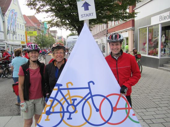 ... abgefeuert von einem ehemaligen Schützenkönig, nämlich dem Ministerpräsidenten von Baden-Württemberg Winfried Kretschmann. ca. 2000 Radler bildeten ein Meer aus Helmen in der Göppinger Fußgängerzone,